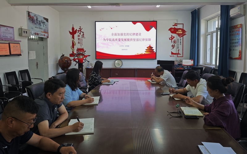 为深入落实开展党纪学习教育的工作要求,教育引导学院党员干部增强纪律意识,6月26日,学院党委书记张晓丽以“全面加强党的纪律建设 为学院高质量发展提供坚强纪律保障”为题,讲授党纪学习教育专题党课。专题党课在学院会议室举行,学院中心组成员、各支部书记参加。