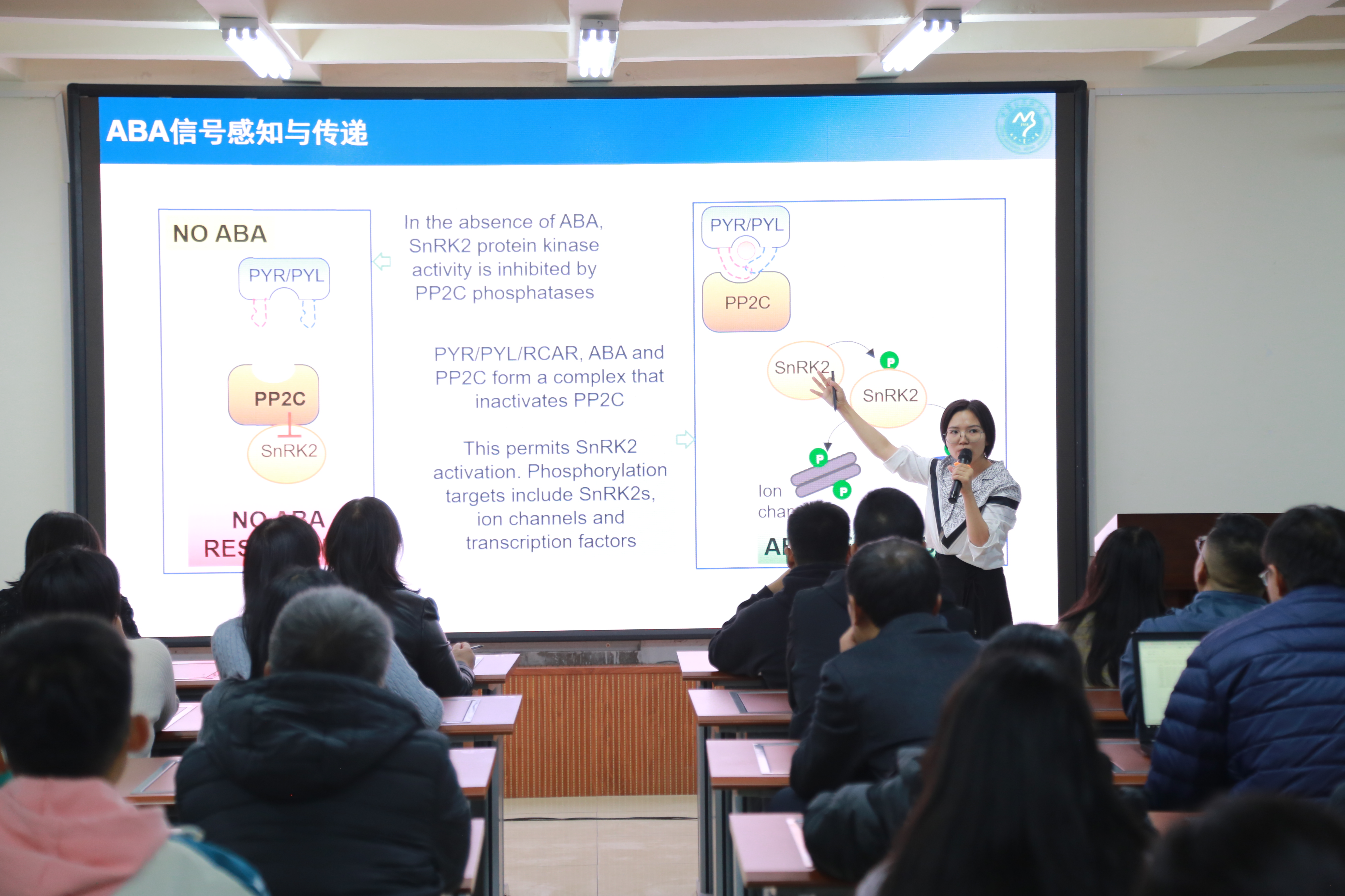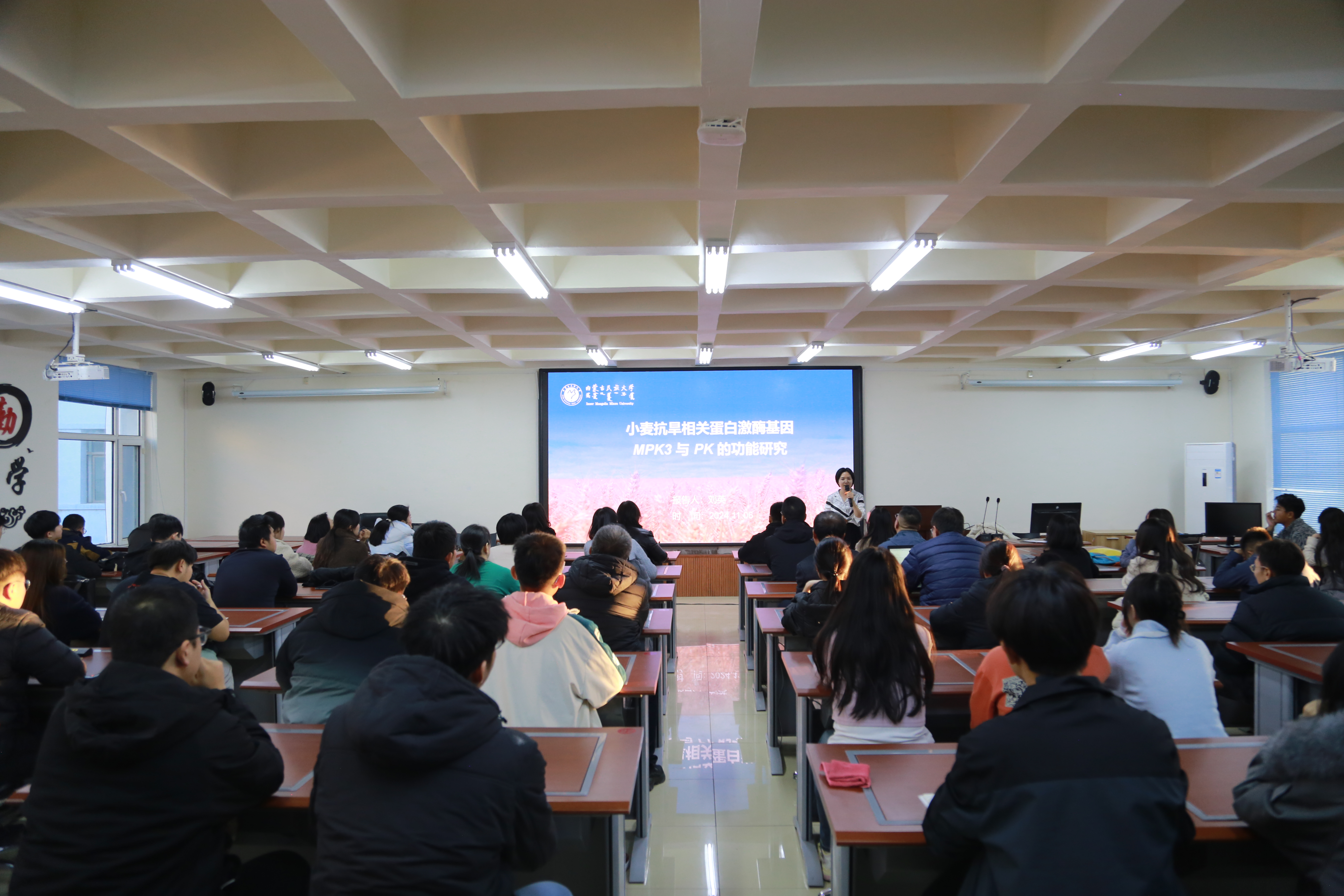 刘英博士根据自身的学习和科研经历,详细介绍了小麦抗旱基因挖掘以及抗逆分子调控机理研究的相关内容,并结合研究生阶段对于课题选择和研究思路方面的思考,以及如何将科研数据转化成高质量的成果,介绍了自己在面对科研瓶颈时通过广泛交流和不懈探索的科研奋斗历程。汇报结束后,参会的老师和研究生积极与刘英博士进行讨论与交流,展现了我院活跃向上的良好科研氛围。