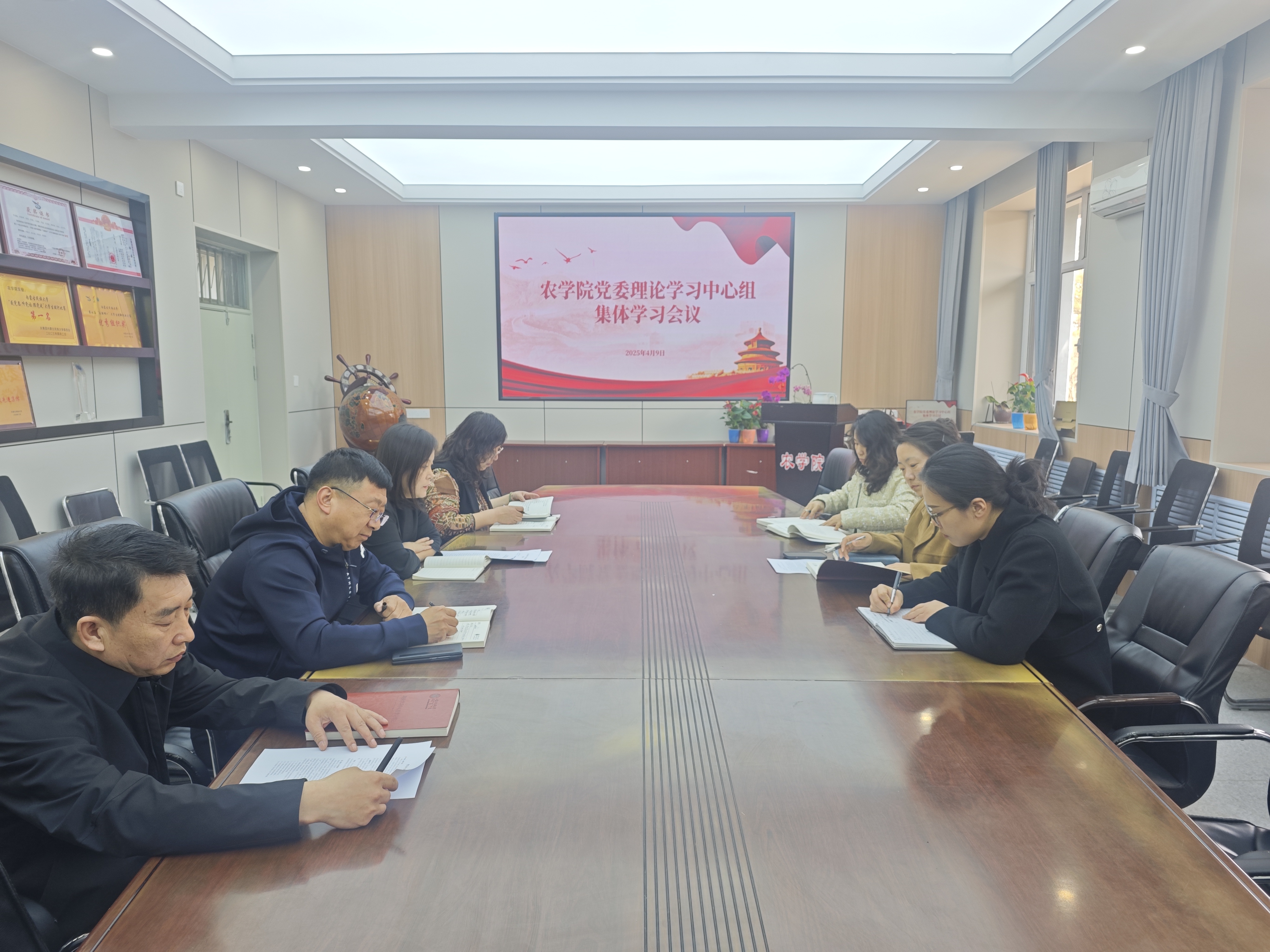 4月9日,农学院党委理论学习中心组集体研讨学习会议在农学楼110会议室举行。学院党委理论学习中心组成员参加会议。会议由学院党委书记张晓丽主持。