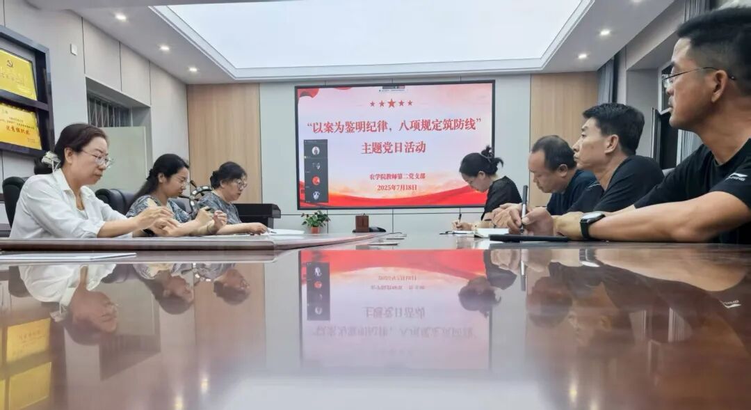 7月18日,农学院教师第二党支部开展主题为“以案为鉴明纪律,八项规定筑防线”党日活动,支部教师以线上线下相结合的方式参加活动。