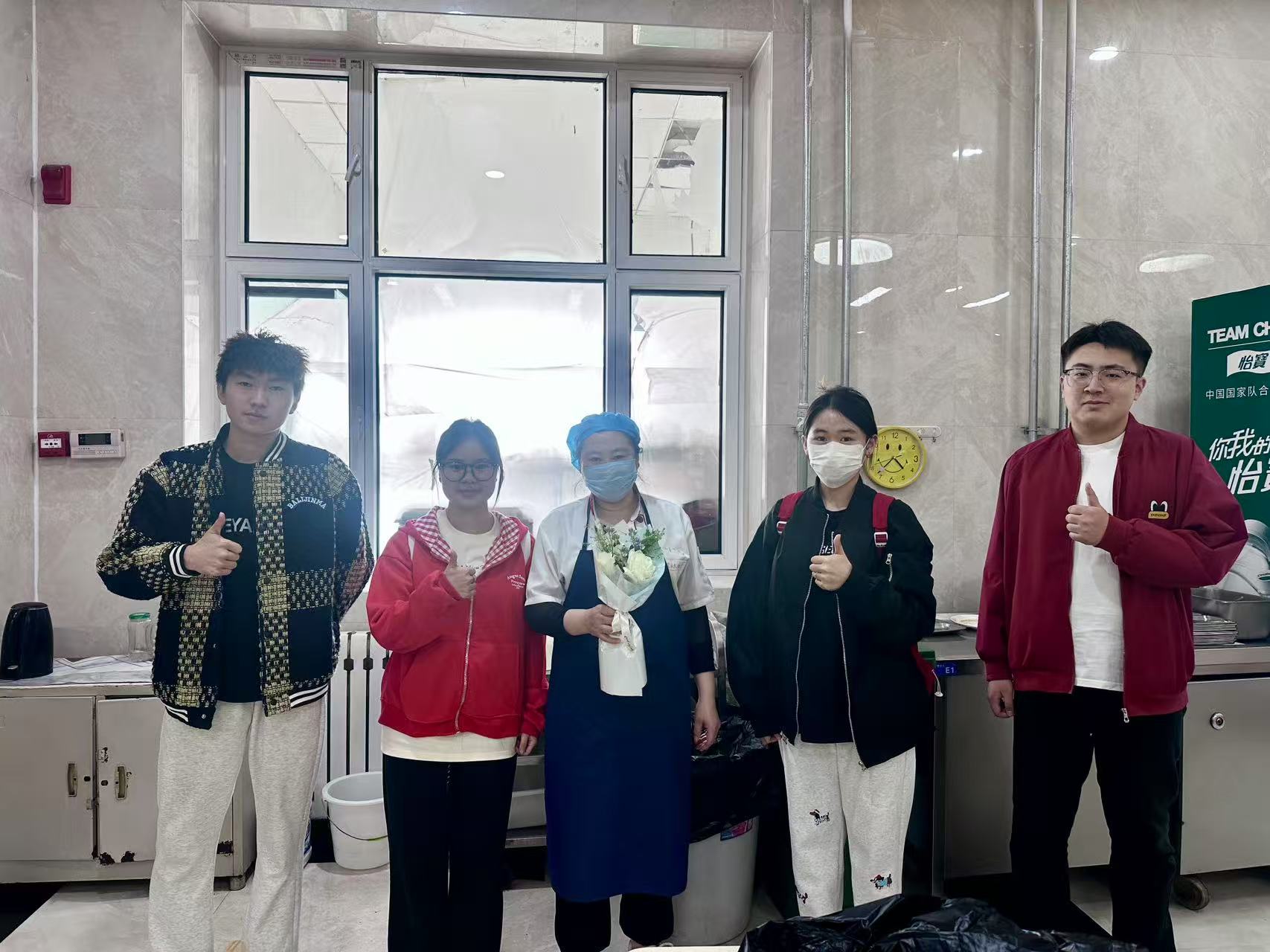 活动期间,学院各班级积极响应、精心组织,前往校园及周边区域,为食堂阿姨、学校保安、外卖骑手、公寓阿姨、建筑工人等一线劳动者送上鲜花、饮用水等物品,以实际行动传递对劳动者的敬意与温暖。通过节日慰问,不仅为劳动者送去祝福,也使同学们近距离感受到每一个平凡岗位背后的坚守与奉献,切实增强了尊重劳动者、珍惜劳动成果的意识。
