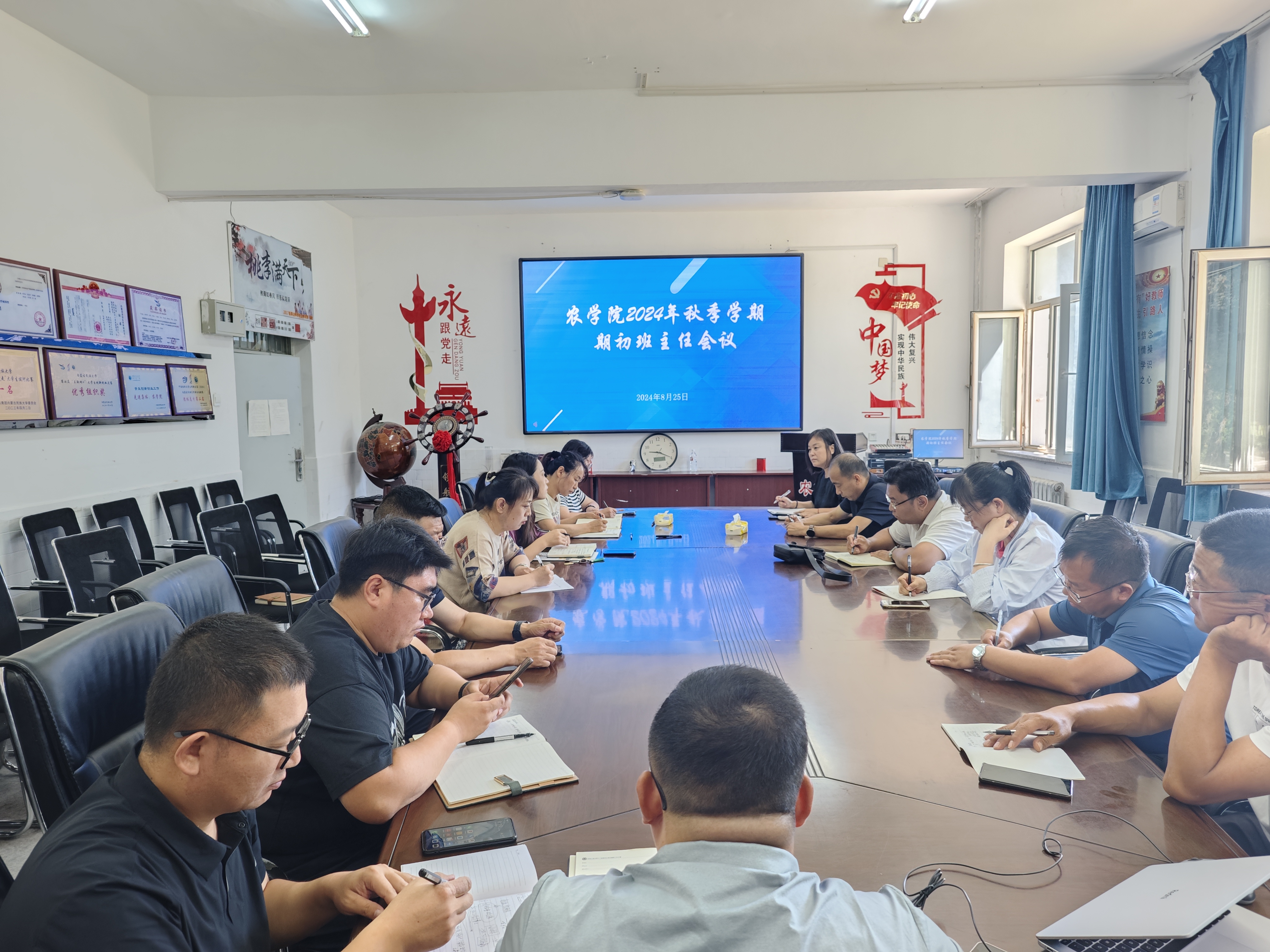 8月25日上午,农学院在学院会议室召开新学期期初班主任会议,部署迎新和开学相关工作。学院领导班子成员、全体辅导员、班主任参加会议。会议由学院党委书记张晓丽主持。