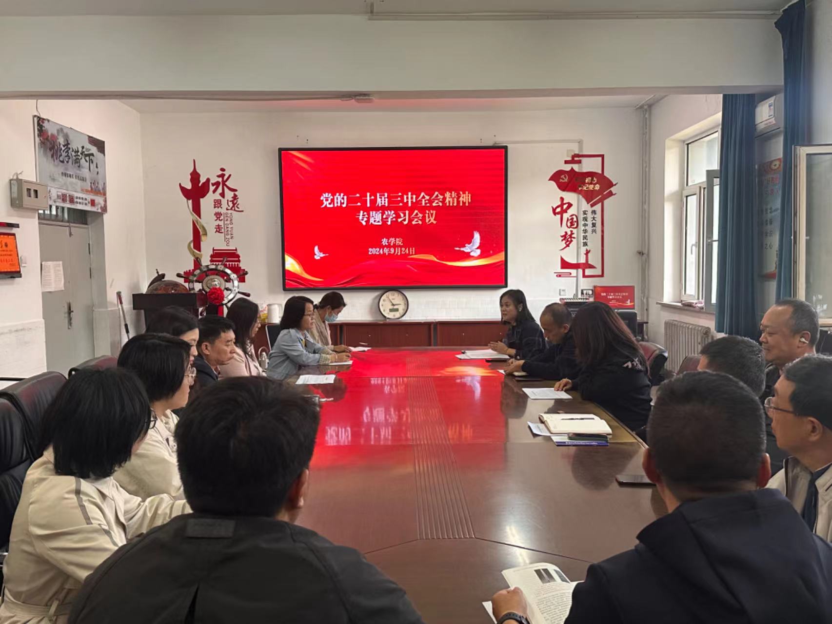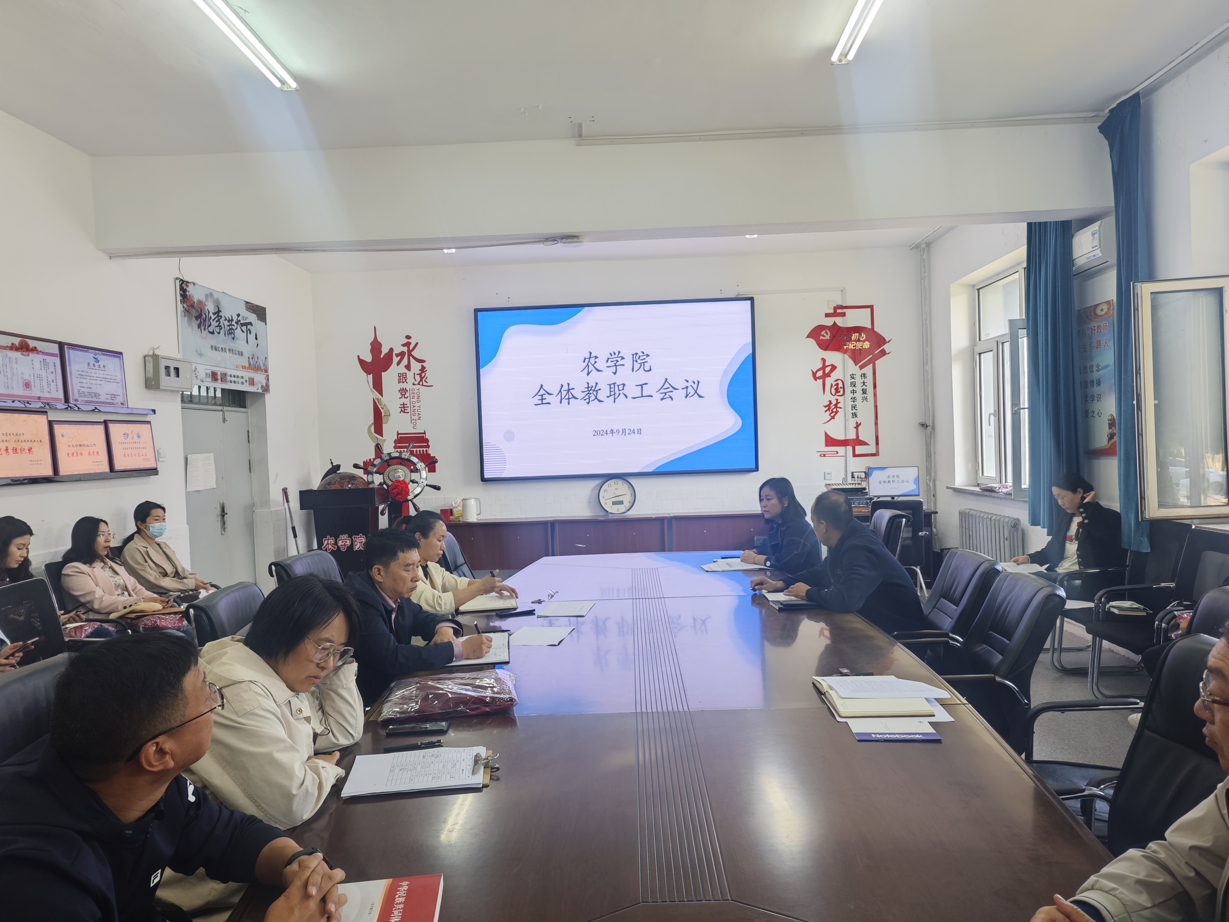 9月24日下午,农学院在农学楼110会议室召开全体教职工会议。学院领导班子成员、全体教职工参加会议。会议由学院党委书记张晓丽主持。
