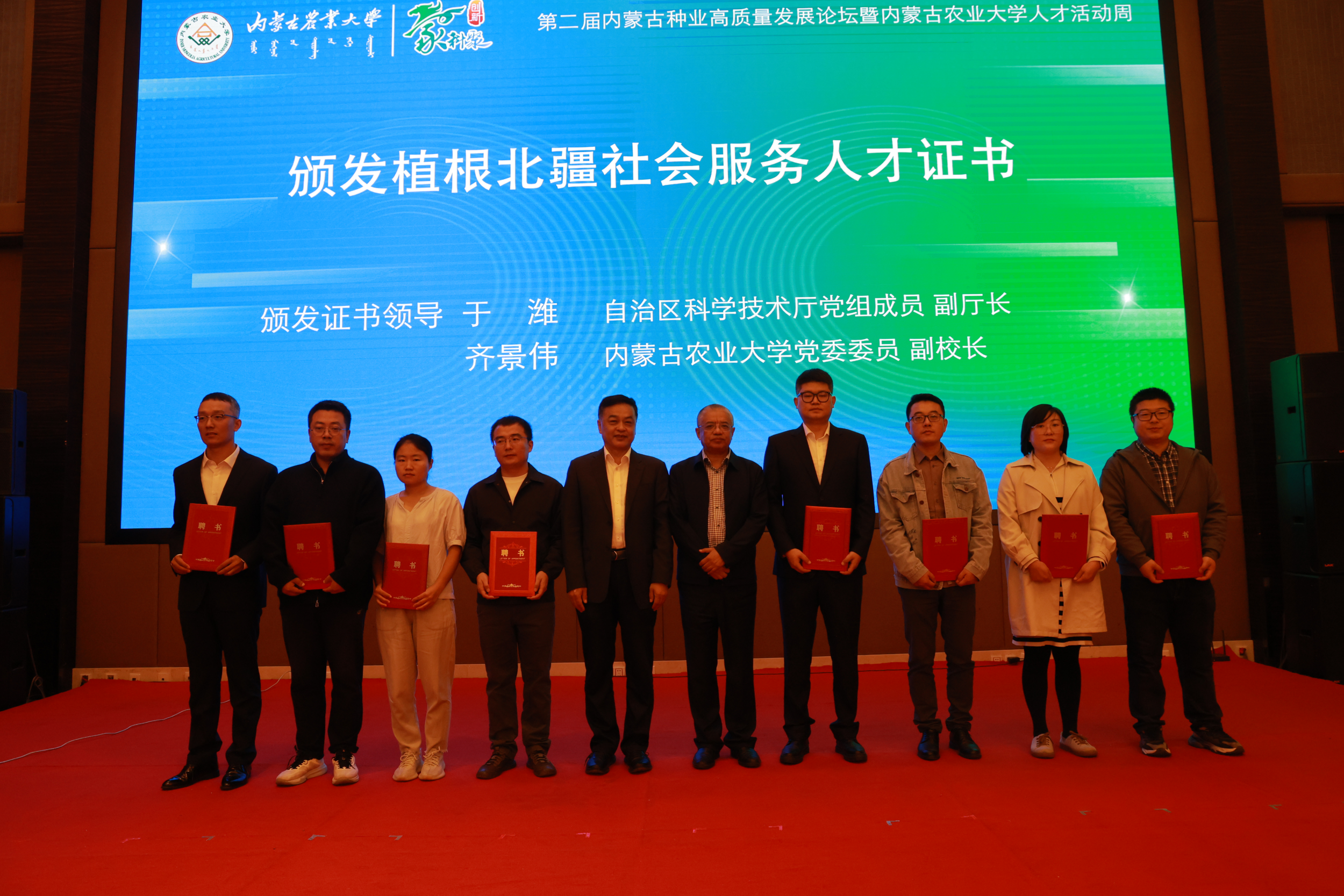 动物科技学院李倜宇博士被评为植根北疆社会服务人才,种业协同创新联盟为期颁发证书。16家高校、科研院所、政府、企业签订了科技成果转化协议。