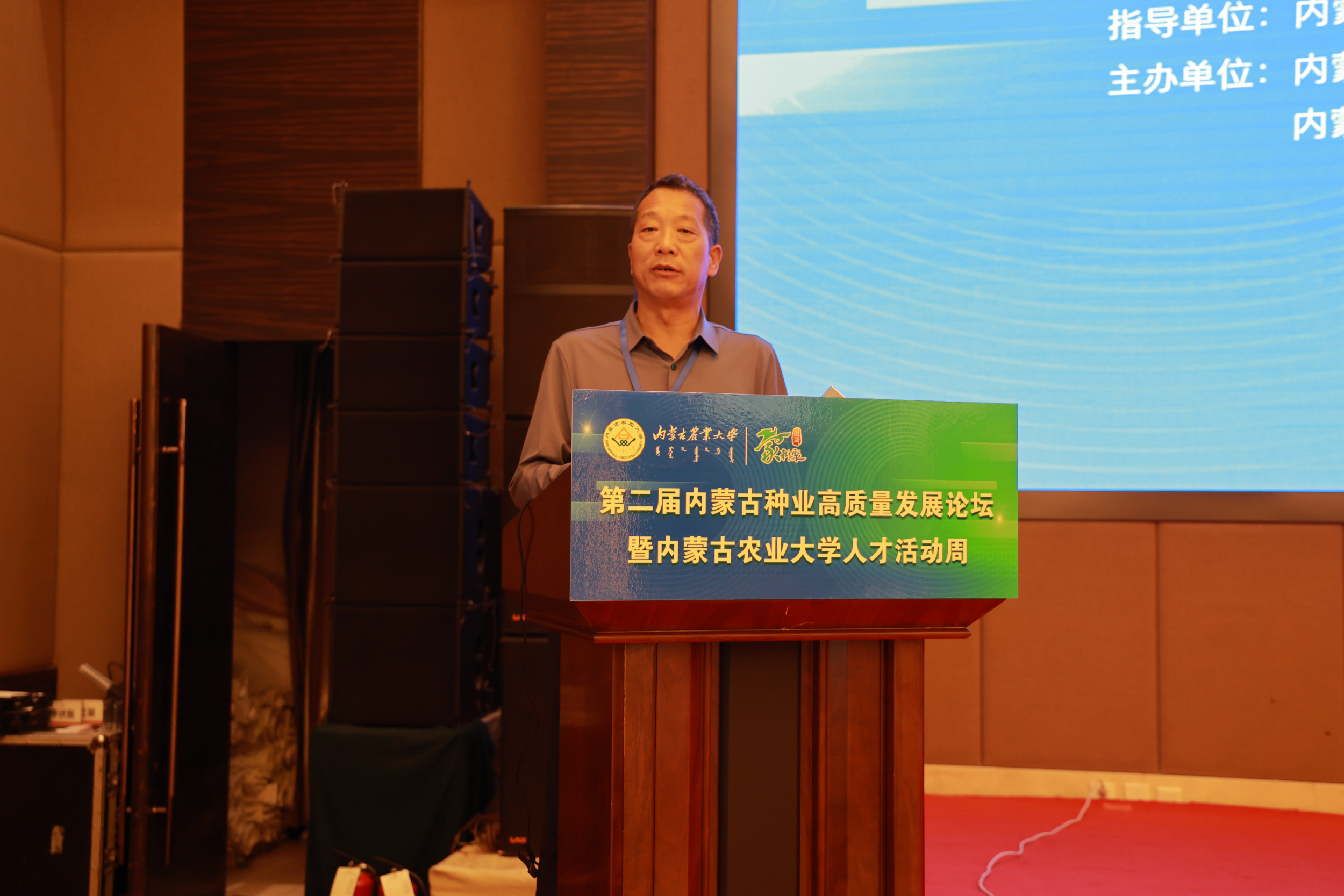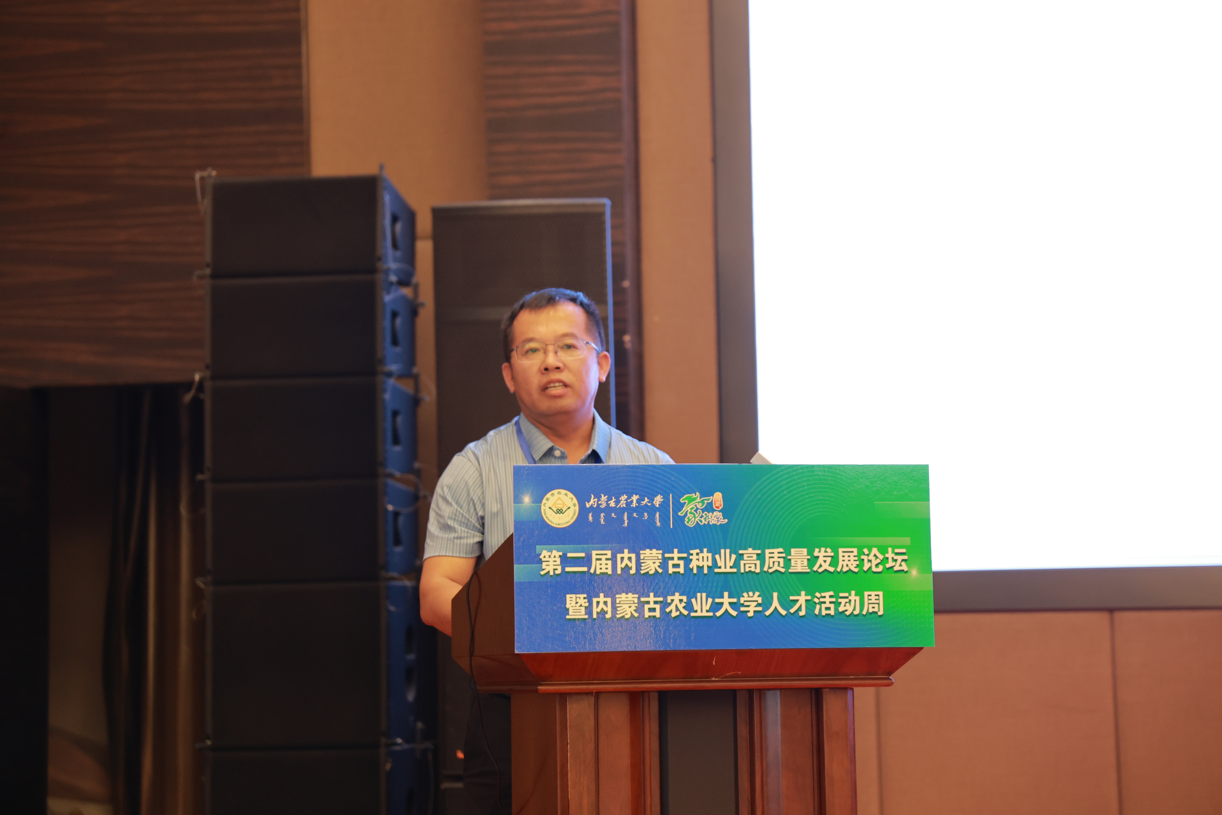 9月28日上午,由内蒙古农业大学和内蒙古科技创新发展中心主办的内蒙古种业高质量发展论坛及人才活动周在呼和浩特举行。校党委委员、副校长杨恒山出席大会,农学院、动物科技学院相关教师参加论坛。论坛邀请中国科学院院士、中国科学院遗传与发育生物学研究所曹晓风研究员,国家肉羊产业技术体系首席科学家、内蒙古大学副校长刘永斌教授,国家谷子高粱产业技术体系首席科学家、中国农业科学院作物科学研究所贾冠清研究员作了大会特邀报告。