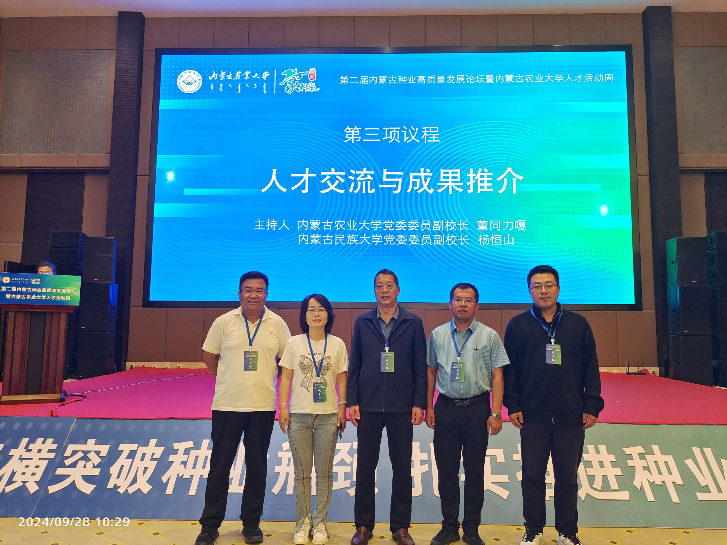 农学院作物学科育种团队教师王晓东博士代表我校作种业创新成果推介,就近3年我校育成的内民大3号、内甜糯103、内甜糯2号、内民粱1号、内民粱2号及后续品种内民大66号、内民大79号、内民玉甜糯105、内民玉甜糯106 、内民粱3号等作物新品种的生物学特性、熟期、品质、产量、抗性、适应性及突出优点等方面进行了介绍。