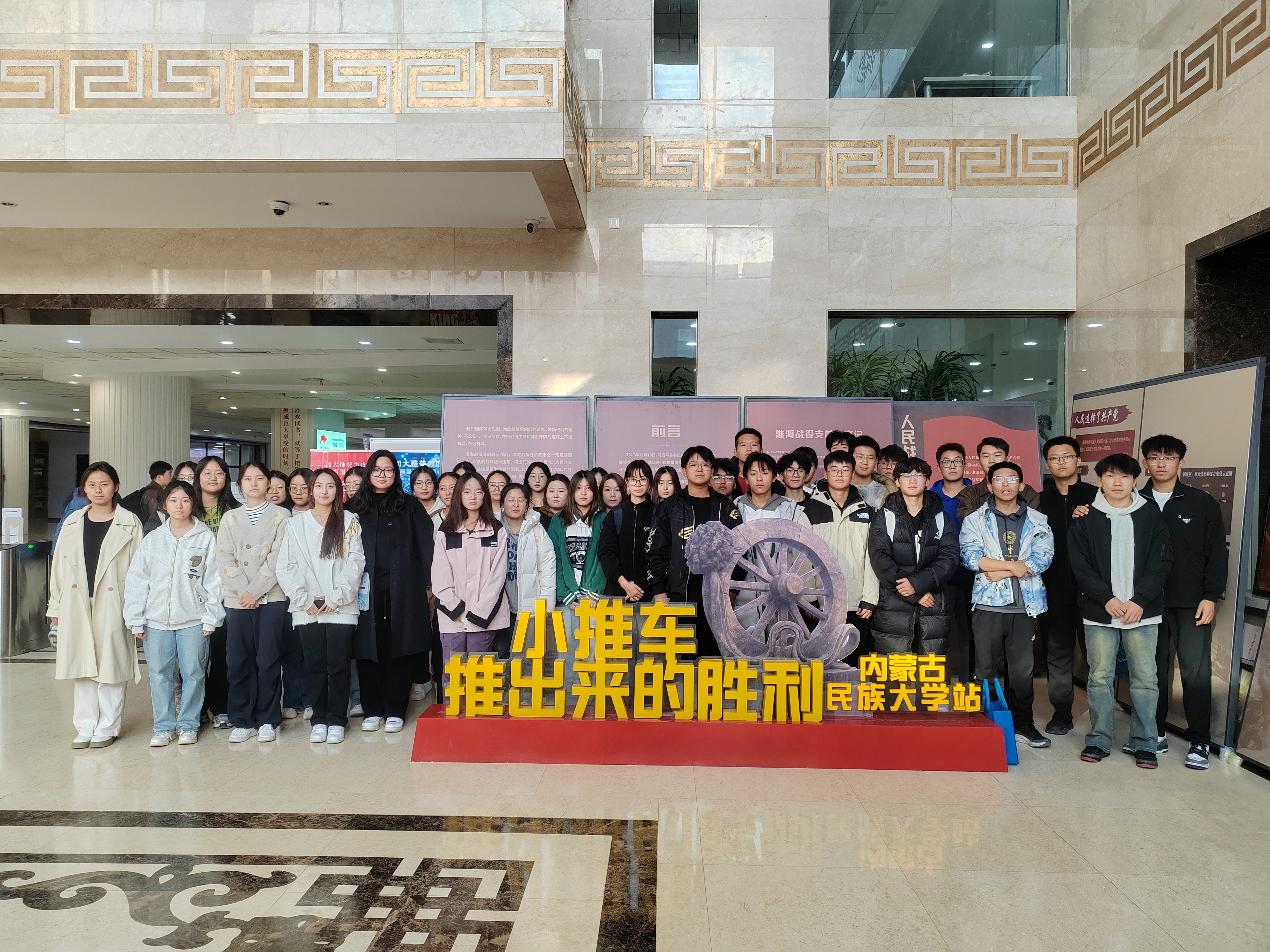 为深入贯彻爱国主义教育理念,弘扬爱国主义精神,10月23日至25日,农学院组织2024级新生参观“小推车推出来的胜利——淮海战役支前文物图片展”。