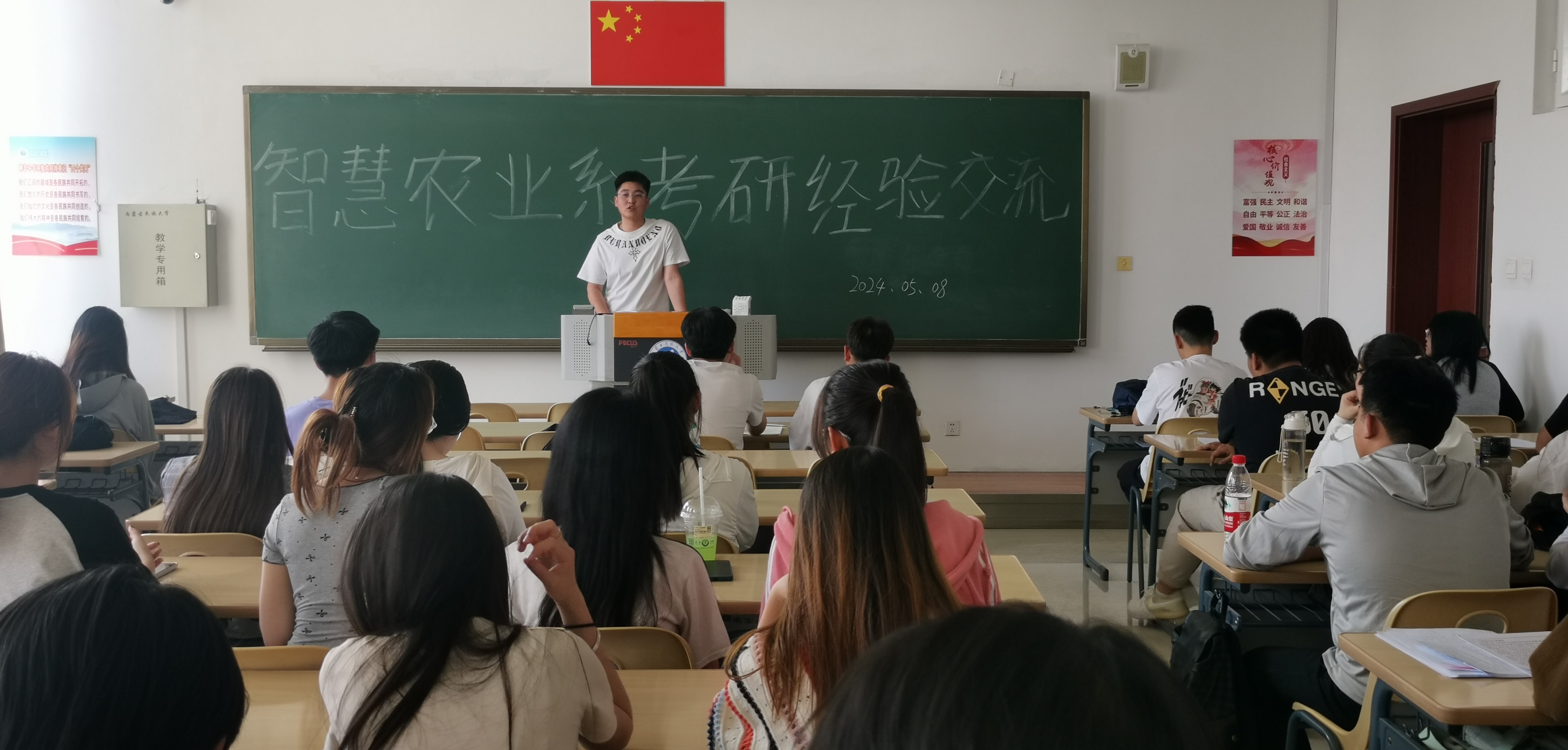 为进一步做好2021级智慧农业专业学生研究生备考工作,提高考研录取率。5月8日,智慧农业系在实验楼401教室举办考研经验交流会。智慧农业系主任贾俊英、2024届考研优秀学生代表及2021级全体学生参会。会议由系副主任李志军主持。