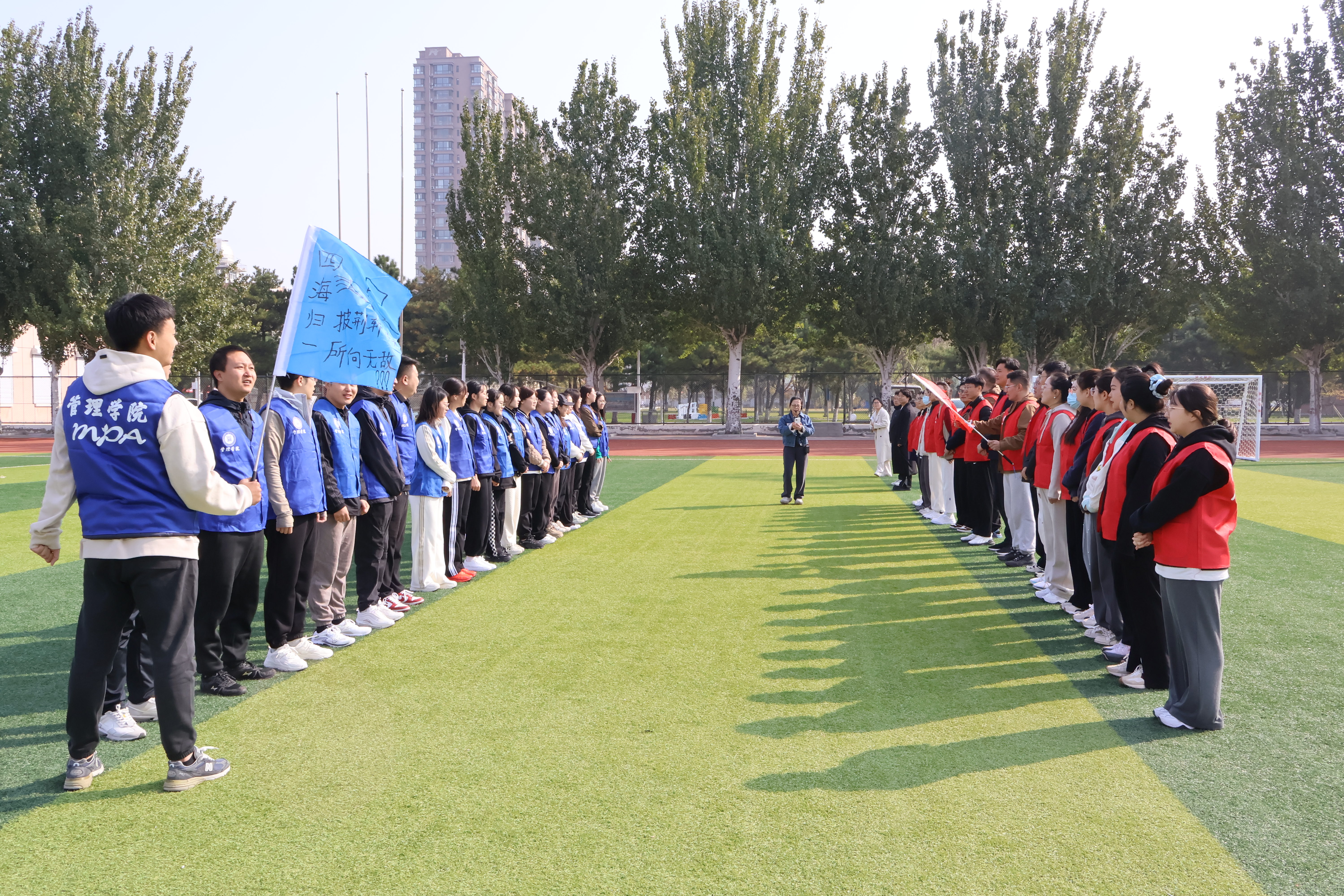 为进一步促进2024级MPA研究生之间的情感交流和融合,增强新生们的归属感、凝聚力及集体协作能力,助力他们迅速适应并充分享受丰富多彩的校园生活,管理学院MPA教育中心于10月7日联合菠萝蜜素质教育培训机构在霍林河校区体育场开展了“研途筑梦,青春起航”主题素质拓展训练。