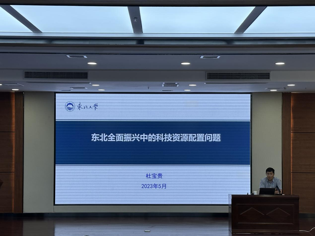 杜宝贵教授首先从科技创新支撑引领东北振兴的现实意义出发,分析了近十年东北地区在落实制造强国质量强国战略、区域协调发展战略、创新驱动发展战略和完善区域科技创新体制机制方面取得的成效,并按照时间维度解读了东北三省科技创新资源配置态势。随后,杜教授指出东北三省科技创新资源配置中存在科技人才资源流失、科技经费投入不足、科技成果转化成效不足、算力基础设施落后等方面的问题,并深刻剖析了问题产生的原因。最后从国家战略需要和东北地区四大机遇出发,针对现存问题对应提出了十一条思考与建议。整场讲座立意高远、视野开阔、逻辑缜密,具有很强的理论性、政策性和现实针对性。