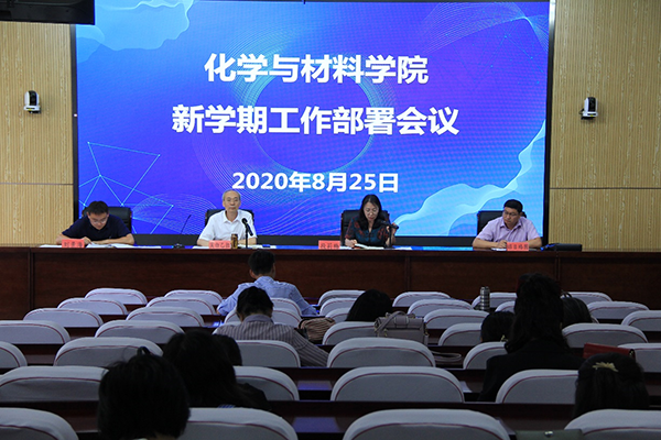 为了进一步落实与推进化学与材料学院新学期各项工作的顺利进行,2020年8月25日下午,在西拉木伦校区实验楼107教室,召开了化学与材料学院新学期工作部署会议,会议由学院党委书记吴白乙拉主持,学院领导班子成员及全体教师参加了此次会议。