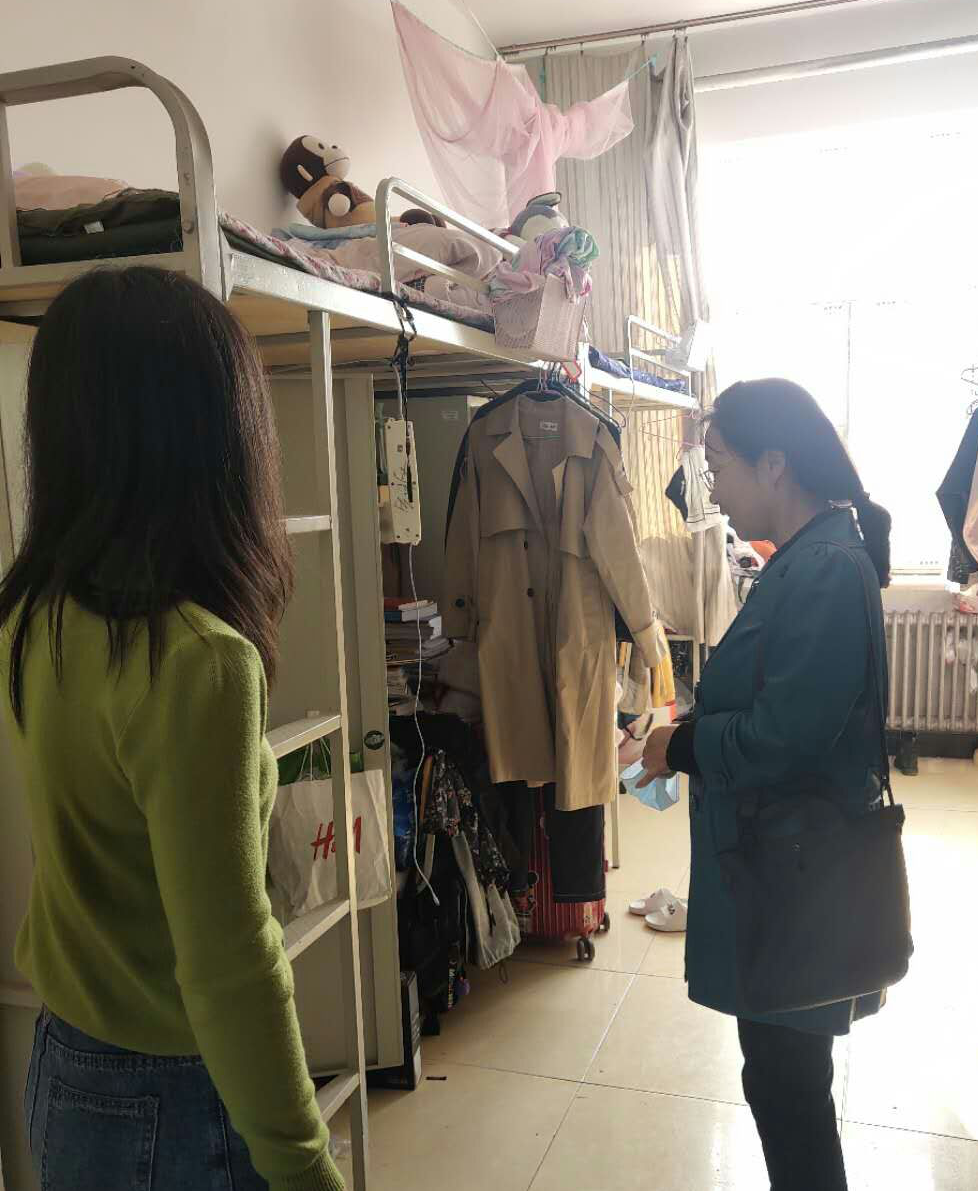 在学生公寓内,学院领导班子走访学生宿舍,逐一了解同学们学习、生活及宿舍搬迁情况。吴白乙拉书记详细解释学校公寓、食堂维修、校园环境改善等措施,并叮嘱同学们要遵照学校规定,做好个人防护,遵守学校管理规定,及时做好个人心理调整,调整生活作息规律,搞好宿舍卫生。段莉梅院长亲切叮嘱要做好学习规划,按时完成学业,要加强个人防护和保暖措施,要遇到困难及时反馈,学院一定根据实际情况及时制定措施。