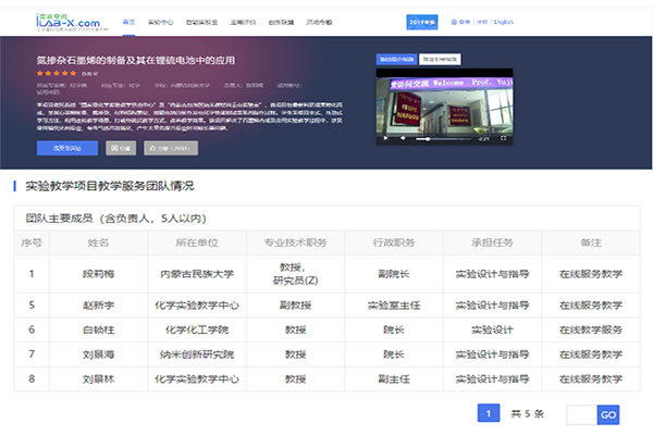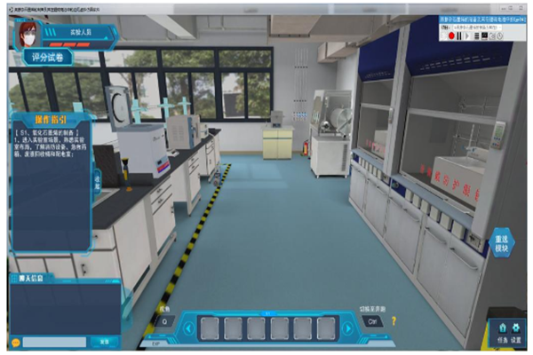 本课程项目依托内蒙古民族大学“国家级化学实验教学示范中心”和“内蒙古自治区纳米碳材料重点实验室”,由项目组最新研究成果转化而成。虚拟仿真实验环节包括石墨烯制备、氮掺杂、材料结构表征、锂硫电池的制作以及电化学性能测试等系列操作流程。学生采取自助式、互动式的学习方式,利用虚拟教学场景,打破传统式教学方法,体验实验的全程,改善教学效果。该项目解决了石墨烯合成及应用实验教学中,涉及使用强氧化剂反应、有毒气体高温氮化、产生大量危废且反应时间较长等问题。
