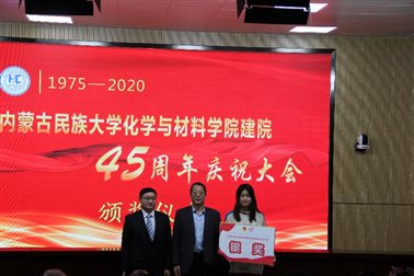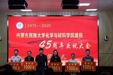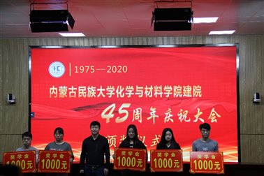 11月25日,化学与材料学院在内蒙古民族大学西拉木伦校区实验楼107会议室召开建院45周年庆祝大会。通辽市人大副主任,我院83级校友希日巴拉、校党委副书记李文阁研究员、校党委委员、副校长杨恒山教授、学校各部门领导、学院党委书记吴白乙拉、院长段莉梅、党委副书记昭日格图、副院长刘景海、部分校友代表、友好企业代表、学院全体教师以及学院学生代表共150余人参加会议。庆祝大会由学院党委书记吴白乙拉主持。