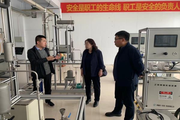 公司董事长孙铭洲从企业的发展历史及服务高等教育行业角度为我院参观学习的老师进行了详细讲解。段莉梅院长等人与公司管理层人员就化工专业“双师型”教师队伍建设、协同育人项目的开展等方面进行了交谈。参观期间化工专业教师同企业技术人员就智能化工设备开发与专业实验教学相结合、线上线下混合式实验教学等方面进行了详细的交流。