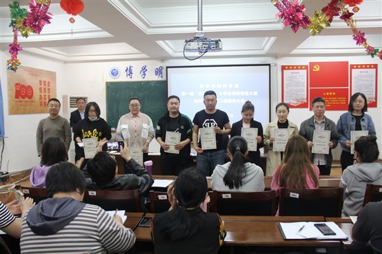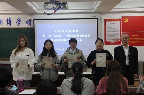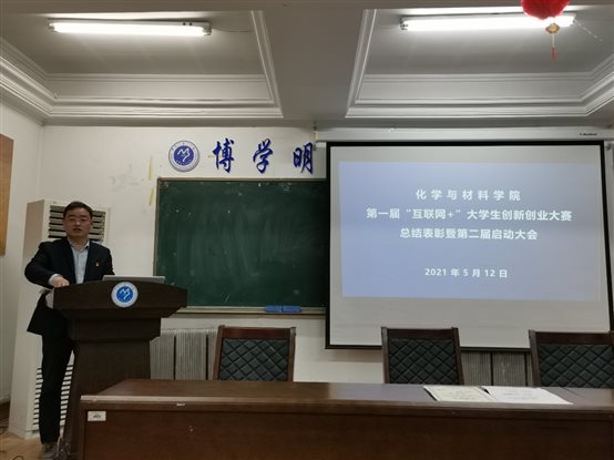 会上,宣读了学院表彰决定,与会领导为获奖项目(金奖、银奖、铜奖),优秀指导教师和优秀组织奖(班主任)颁发荣誉证书,展示了国家级“铜奖”公益助学项目:“暖阳下我迎芬芳”。包旭霞从如何撰写创业计划书、ppt路演、短视频制作等方面做大赛辅导。刘景海做了动员部署,梳理了组织第一届“互联网+”大学生创新创业大赛的经验和取得的成绩,鼓励班主任精心组织项目,完成学校分配的指标任务,加强大学生(研究生)创新创业教育,发扬学院优良学风,再接再厉争创优异成绩。