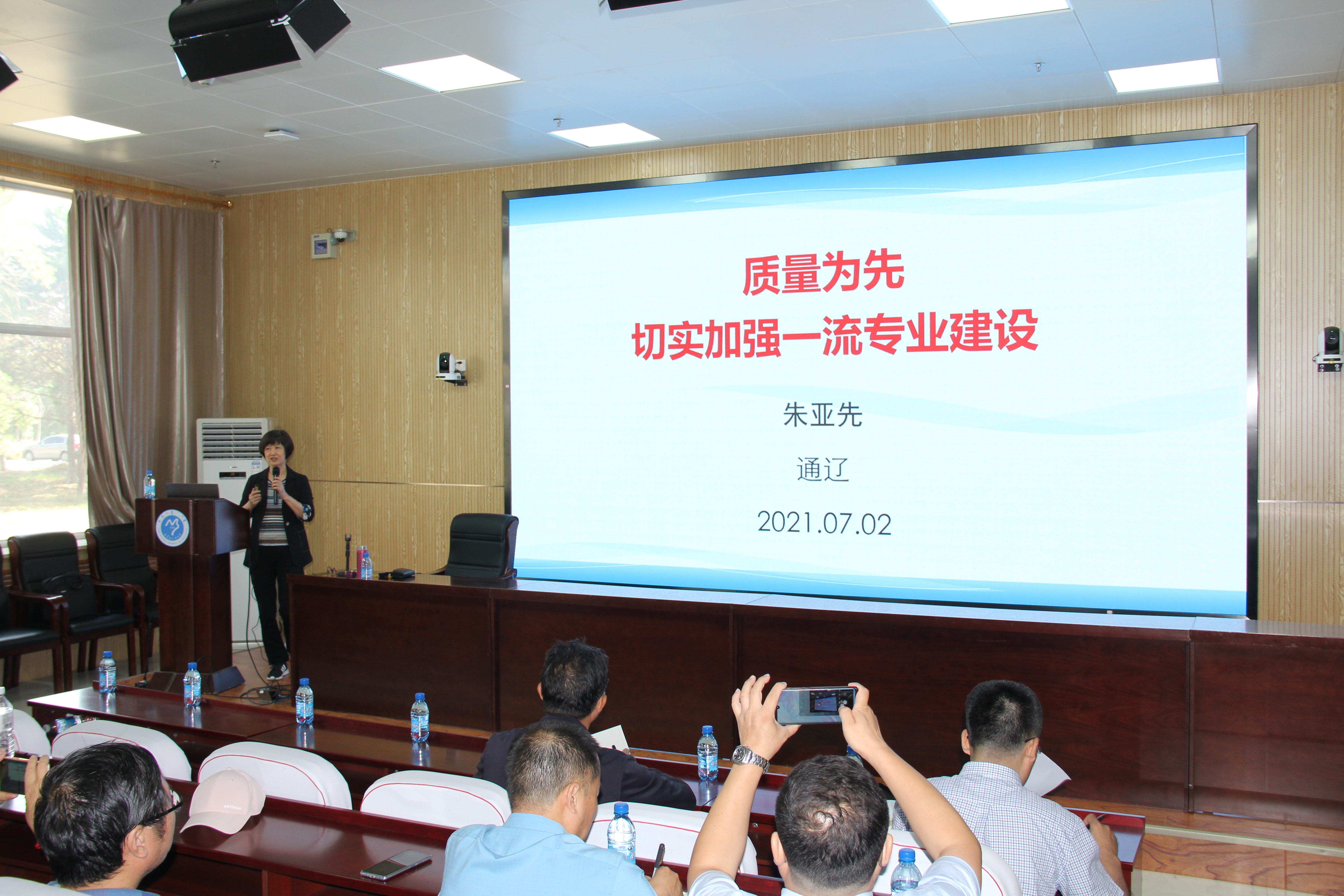 为庆祝建党100周年,7月2日,我校特别邀请了厦门大学朱亚先教授在西拉木伦校区实验楼107室作了题为“注重质量 切实做好一流专业建设”的报告,这也是我校“化学与材料论坛”系列活动之一。党委委员、副校长任军教授出席并讲话,各学院教学院长、系主任和专业负责人,化学与材料学院专任教师等近150人参加了此次报告。报告会由教务处副处长王亮主持。