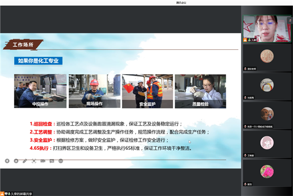 由于受疫情影响,企业宣讲会均安排在线上通过腾讯会议进行。会议由刘景海院长主持,各企业人力资源负责人作报告。企业介绍了自身发展背景、主要生产产品、生产环境和用工需求。分不同专业介绍了工作特点。同时也对学生们感兴趣的衣、食、住、行等条件进行了讲解和介绍。学生们也积极咨询了薪资待遇、晋升通道等问题,负责人们也给予了耐心细致的解答。