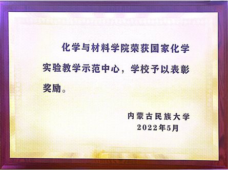 近年来,我院在教学平台、一流专业和一流课程建设以及教育教学管理等工作中成效显著,荣获多项先进集体奖和先进个人奖。化学实验教学中心被评为国家级实验教学示范中心、化学专业被确定为国家级一流本科专业建设点、“氮掺杂石墨烯制备及其在锂硫电池中的应用”获批国家级虚拟仿真实验教学一流课程;“民族院校无机化学系列课程的建设与改革”成果获得国家民委教学成果二等奖、“无机化学精品课程建设的探索与实践”自治区教学成果三等奖,柔性电催化纳米纤维膜反应器促进锂/硫的化学转化、“暖阳义教”公益助学社会实践、无机化学和药物化学等4门课程被评为自治区级一流课程,徐玲教授获得自治区级教坛新秀奖和实践创新及学科竞赛突出贡献奖;学院获得了学校教学管理先进集体、本科教学改革与质量提升工程建设先进集体、实践创新与学科竞赛先进集体等多项先进集体奖。