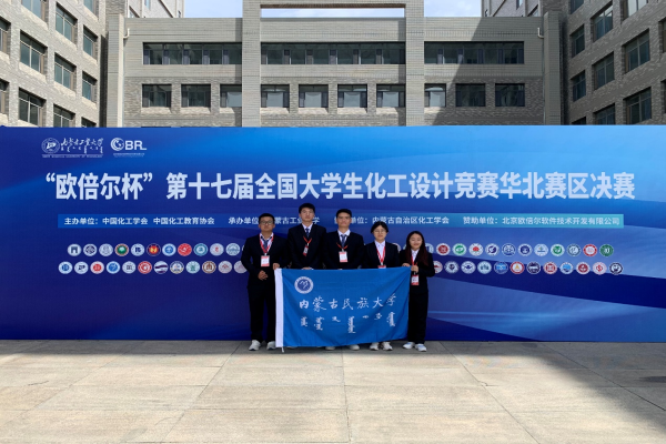 本届赛事汇集来自北京市、天津市、河北省、山东省和内蒙古自治区的73所高校共324支队伍参加比赛。化学国家级实验教学示范中心(内蒙古民族大学)和化学与材料学院学科竞赛与创新创业教研中心推荐的“Horqin FCOA”队伍(参赛队员:陈浩、田家荣、侯禹、朱亚如和常雨寒;指导教师:高飞、赵新宇)经过激烈角逐脱颖而出,入围赛区决赛,最终荣获华北赛区一等奖的优异成绩。