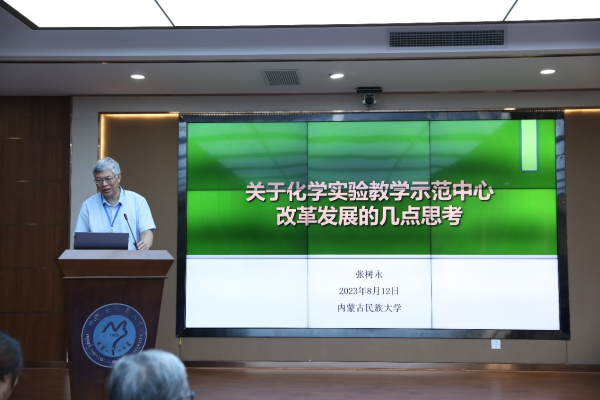 张剑荣教授在讲话中介绍了全国高校化学国家级实验教学示范中心的整体建设和发展情况,指出在内蒙古民族大学建设示范中心对提升民族地区高层次化学人才培养、铸牢中华民族共同体意识、提升实践育人水平、发挥区域示范辐射作用具有重要意义。他希望,示范中心能够在内蒙古民族大学几代领导和化学人的共同努力建设下,亮点特色更加鲜明、示范辐射功能更加突出、教学模式更先进、育人成效更显著。
