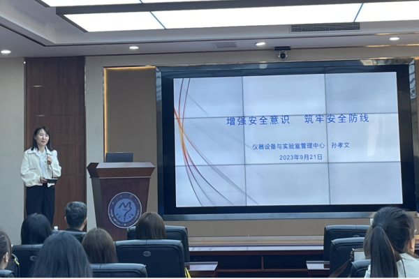 孙孝文主任介绍了内蒙古民族大学实验室与仪器安全管理的各项要求,详细展示了今年教育厅和学校几次实验室安全检查发现的问题及整改情况,并结合研究生实际情况全方面地阐述了实验室安全意识作为科研工作中人身安全保障的重要性。