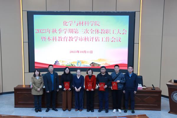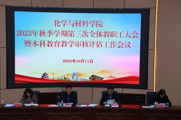 10月11日下午,为全面迎接并做好本科教育教学审核评估工作,化学与材料学院于明理楼报告厅召开2023年秋季学期第三次全体教职工大会暨本科教育教学审核评估工作会议,学院党委书记格日勒图、院长刘景海、副书记喜杰、副院长宋娟娟及全体教职工参加会议。会议由格日勒图主持。