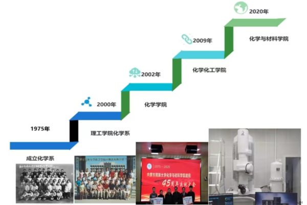 化学与材料学院学科建设历史悠久,底蕴深厚,始建于1975年,其前身是原通辽师范学院化学系,1981年更名为内蒙古民族师范学院化学系,2000年学校合并组建后更名为内蒙古民族大学理工学院化学系,2002年成立化学学院,2009年更名为化学化工学院,2020年更名为化学与材料学院。学院现设有化学(师范类)、材料化学、化学工程与工艺、应用化学(ISEC项目)4个本科专业,化学学科为国家民委重点建设学科,拥有化学一级学科硕士学位授权点,招收化学学术型硕士研究生和学科教学(化学)专业硕士研究生。学院经过多年建设,已拥有一支年龄、学历、职称、学缘等结构合理的教学团队,能够为各专业学生提供高水平专业类课程、大学化学类课程、实验课程、创新创业、学科竞赛、科研训练、毕业论文等课程、赛事、项目的建设、组织、教学、指导与服务。学院现有96名教职工,教授13人、副教授29人、博士生导师3人、硕士生导师43人,其中获得博士学位教师60人。教师获国家“特贴专家”、自治区教学名师、教坛新秀、突出贡献专家、草原英才、青年科技英才及“321人才工程”等人才称号28人。
