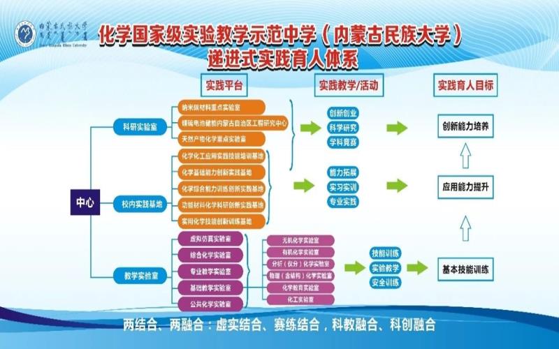 为整合实验教学资源、构建资源共享平台,化学与材料学院将原分散管理的各教学实验室进行整合,于2000年组建了化学实验教学中心。中心于2006年被评为“自治区级实验教学示范中心”,经过10年的建设和发展,2016年初被确定为“化学国家级实验教学示范中心”(内蒙古民族大学),以下简称“示范中心”。“示范中心”坚持“以学生为中心”的育人理念,充分发挥国家和自治区教学科研平台的作用,以培养具有扎实的化学实验基本技能、具有较强的实践能力和创新意识的应用型人才为目标,坚持“立德树人”根本任务,强化实践教学环节,实践育人取得明显成效。“地方高校化学国家级实验教学示范中心实践育人的探索与实践”成果获得2022年自治区教学成果一等奖。