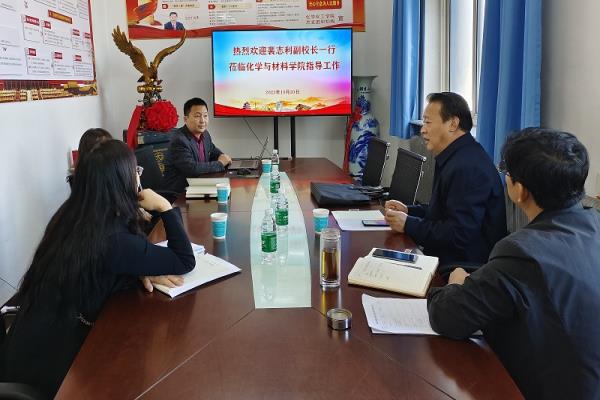 10月20日上午,校党委委员、副校长裴志利深入化学与材料学院对本科教育教学审核评估工作进行调研指导。教务处处长王泰、学院领导班子成员及综合办、教研室老师参加调研。
