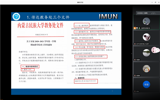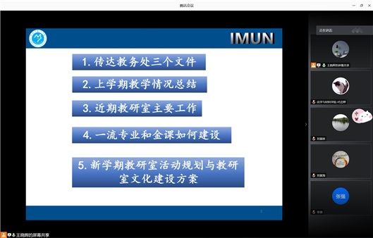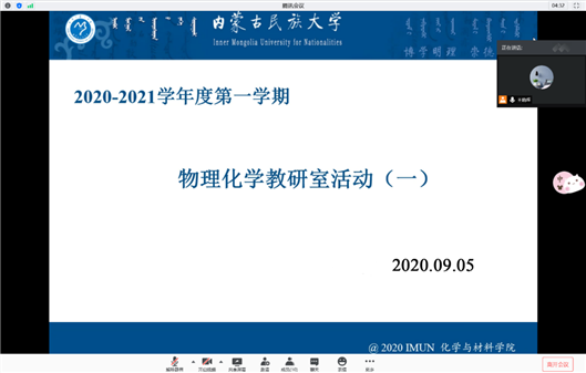 为推动学院“一流专业”和“金课”建设,加快教育教学改革,并鼓励教师树立强烈的责任意识,不断提高教师线上线下教学水平及教学质量教学效果。9月5号,物化教研室组织了2020-2021学年第一学期的第一次教研室线上活动,物化教研室全体教师、副院长刘景海参加,会议由物化教研室主任王晓晖主持。