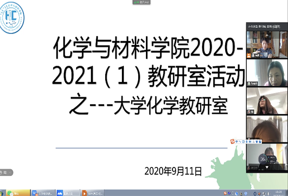 由乌兰格日乐主任主持的大学化学教研室学期初教学活动会议于2020年9月11日上午10点在腾讯会议上进行。大学化学教研室全体教师(包括实验员老师,共15名)参加会议,学院党委副书记昭日格图应邀参加了此次会议。