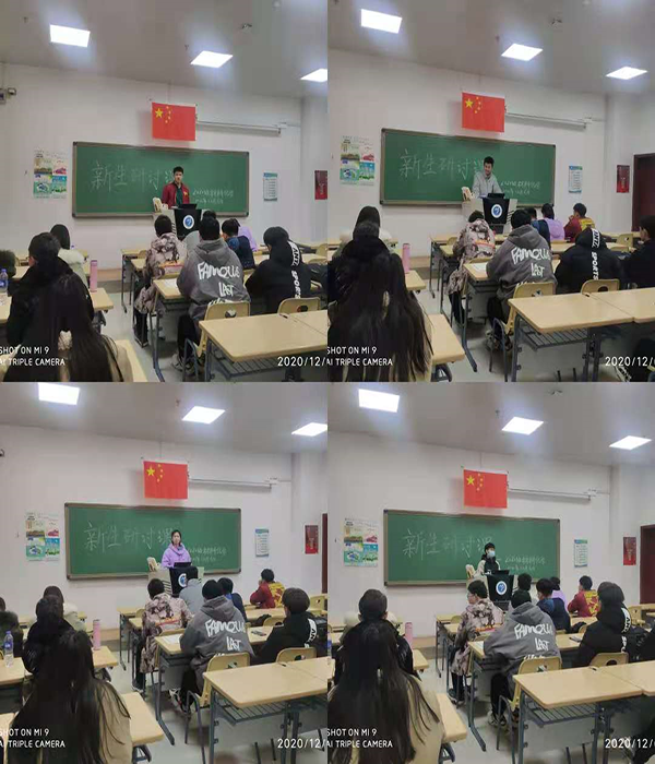 2020年12月6日下午,材料化学教研室面向20级材料化学专业全班同学上了一节不同寻常的新生研讨课。课程由新生班主任韩雪及阿茹娜博士讲解并主持此次课程。本次课程邀请六名19材料化学专业的学生讲述自己的学习经历、目标制定及如何规划大学生活的角度对新生做了介绍,同时部分大一新生也上台发言与大家分享自己开学以来的感悟和规划等。
