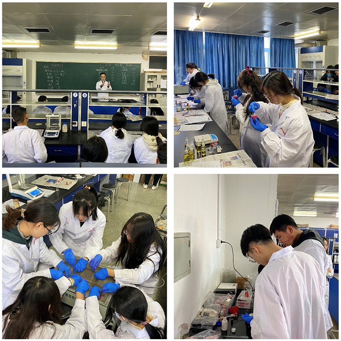 此次活动共有本院的80余名同学及护理学院和生命科学与食品学院的部分老师参加。本次开放活动由应用化学系主任杨杨博士主持,杨杨博士仔细为大家讲解了口红和雪花膏的成分组成及制作方法,并悉心指导同学们完成了产品的制作。