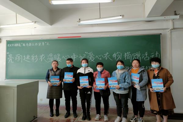 2021年5月9日上午,党史学习教育:“我为群众办实事”之“亮丽迷彩衣,温暖心中记”爱心衣物捐赠活动在西拉木伦校区132教室成功举办。本次活动由机关党委党政办公室党支部、学生处党支部联合化学与材料学院学生党支部主办,国防教育实践团和“暖阳”义教公益助学团队承办。