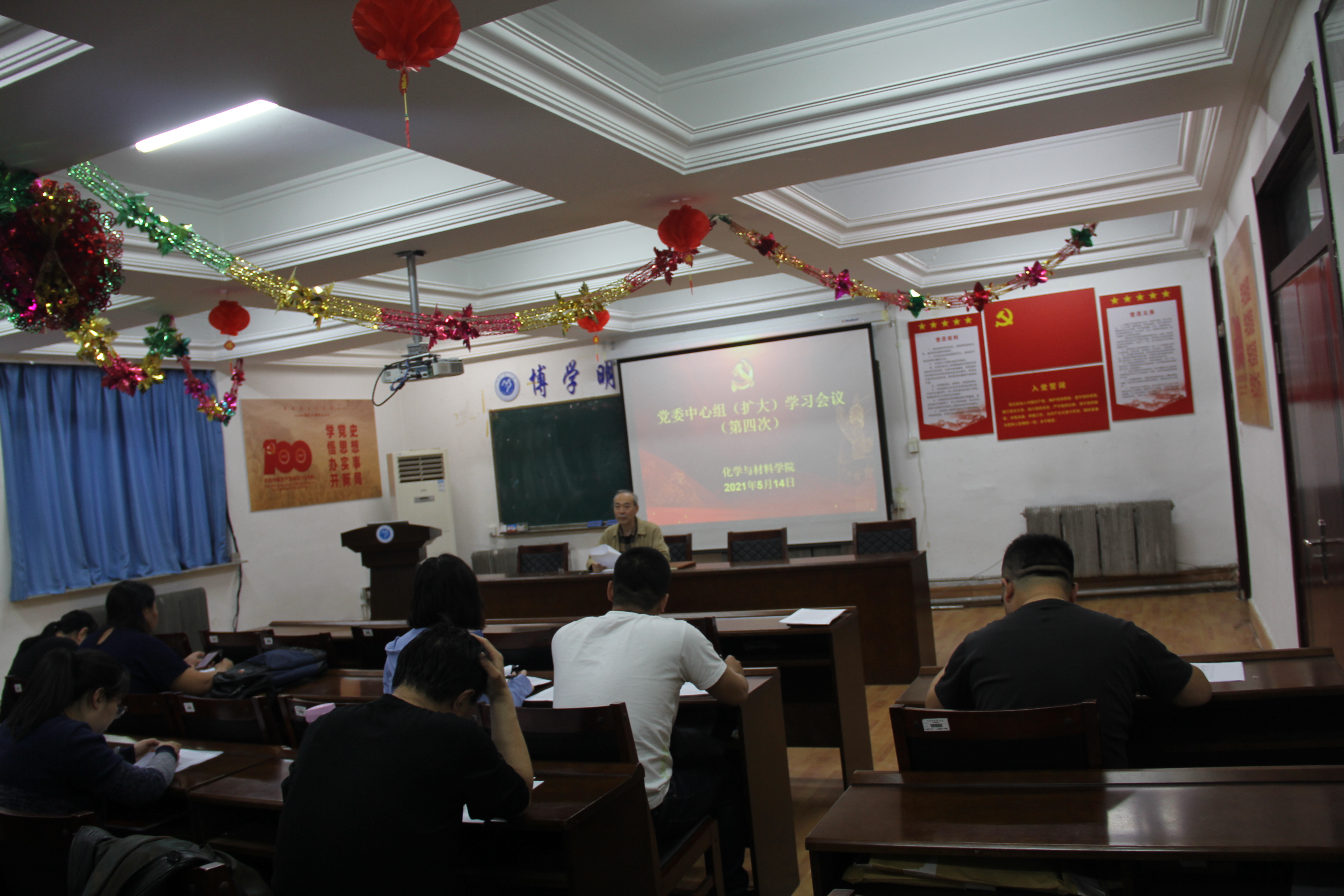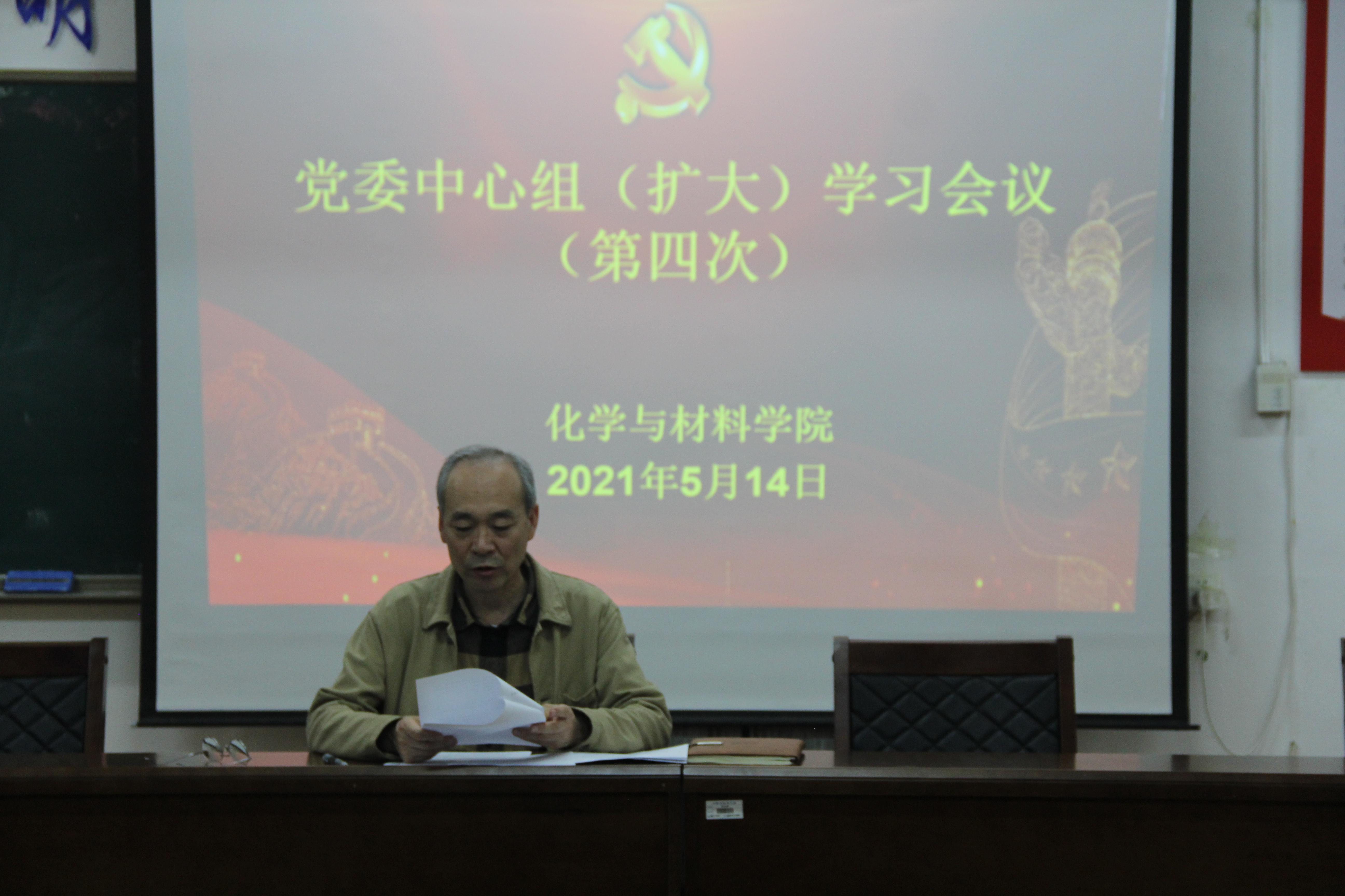 为深入学习贯彻习近平新时代中国特色社会主义思想,贯彻落实新时代党的建设总要求和新时代党的组织路线,5月14日下午,化学与材料学院在树人楼五楼会议室召开党委中心组(扩大)学习会议,学院党委中心组成员参加会议,会议由学院党委书记吴白乙拉主持。