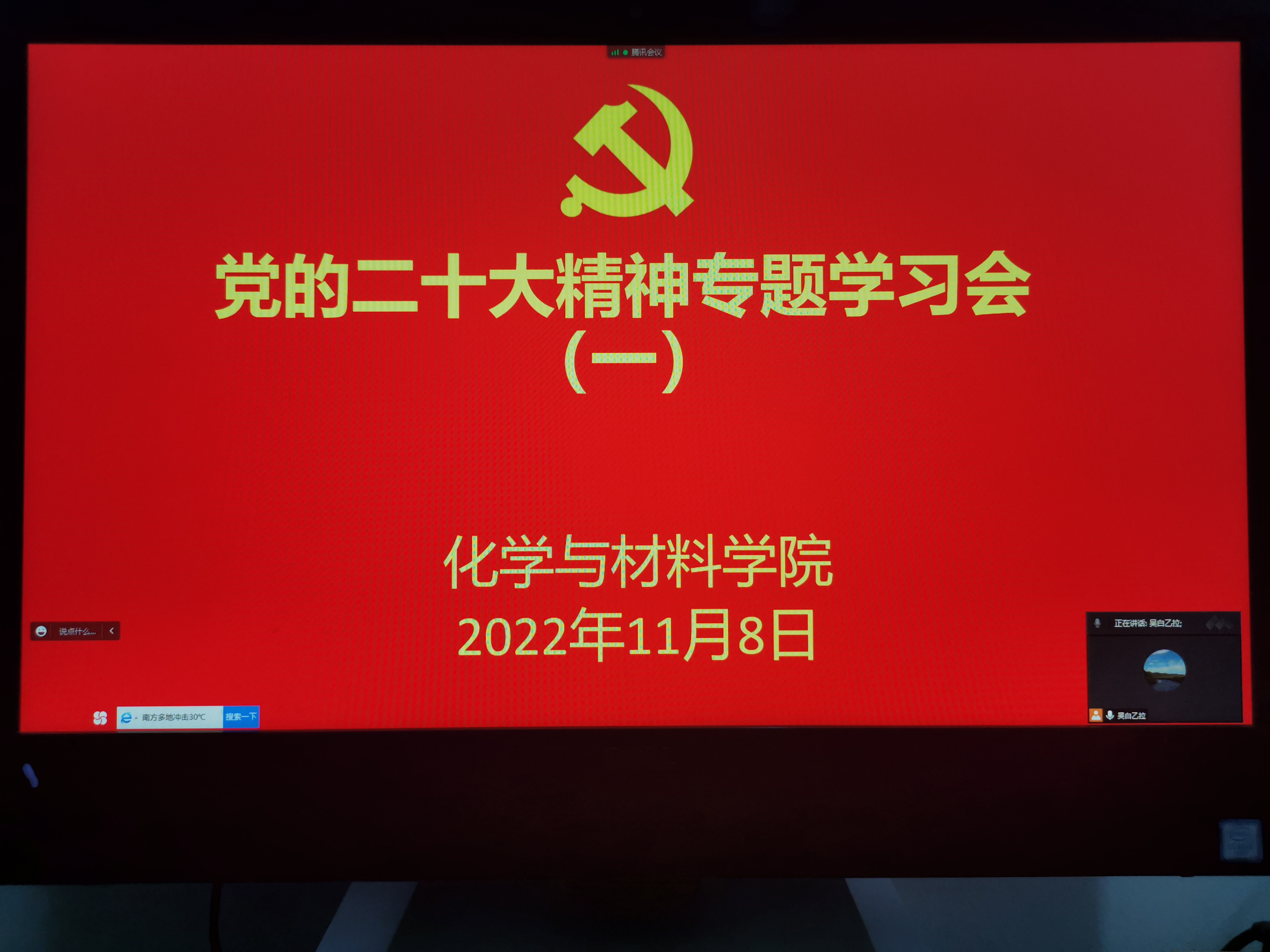 11月8日晚,化学与材料学院召开全体教职工会议,专题传达学习自治区党委书记孙绍骋作的党的二十大精神宣讲报告。学院领导班子成员以及全体教职工在线参加会议,吴白乙拉书记主持会议。