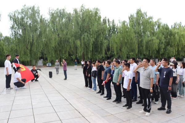 在默哀仪式、敬献花篮结束后,全体党员在庄严的党旗下重温入党誓词。铿锵恢宏的誓词,让党员们心潮澎湃,热血沸腾。党旗鲜红,誓言铿锵,慷慨激昂、满怀激情地宣誓词表达着永不懈怠的精神状态和为党和人民事业永远奋斗的信心、决心。