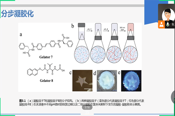 报告会上,车向阳博士首先就制备条件对超分子凝胶结构与性质的影响以及超分子凝胶对水环境的处理两个科学问题进行了讲述,并详细介绍了关于溶剂、温度、放置、超声等因子对分子微观排列结构以及宏观聚集结构的影响。他还与老师及同学们就超分子凝胶制备和应用等相关问题进行了探讨。