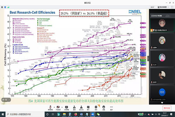 报告会上,阿茹娜博士首先介绍了自己研究生期间的研究方向和具体研究内容;重点对钙钛矿太阳能电池的结构、原理、制备工艺、发展进程、国内外研究现状等做了详细讲述;之后介绍了当前钙钛矿材料在发光二极管、激光器、光电催化等领域的前沿研究工作。