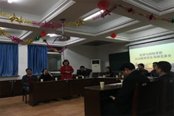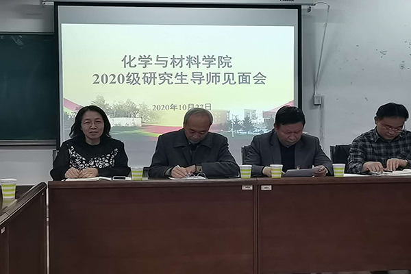 2020年10月28日晚,化学与材料学院召开2020级研究生新生导师见面会。研究生院院长许良教授、学院党委书记吴白乙拉、院长段莉梅教授、副院长刘景海教授以及所有研究生导师参会。本次会议由刘景海教授主持。