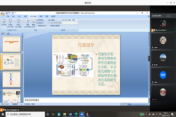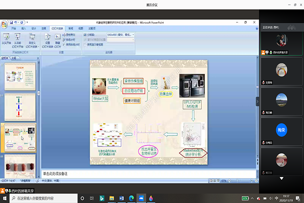 报告会上,王曦烨博士就代谢组学在蒙药研究领域的应用方面做了介绍,重点对其近几年所从事的蒙药森登-4的配伍及利用白豆蔻治疗急性肾损伤机制研究两大部分内容做了详细描述。他还就老师们提出的人工神经网络如何在代谢组学中发挥作用等问题进行了交流。