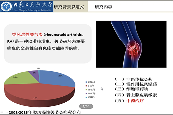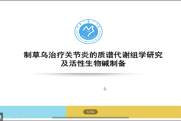随后,赵佳迪硕士就制草乌治疗关节炎的代谢组学研究及生物碱制备进行了报告。她首先介绍了制草乌治疗关节炎的代谢组学研究的相关工作,然后对制草乌中的各部位药进行深入研究,探究各部位药治疗关节炎的作用机制。最后重点介绍有效的部位药并对其进行pH区带逆流色谱分离,从而获得生物碱单体。本次报告会在轻松活跃的交流讨论之后,圆满结束。