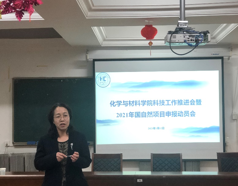 1月12日下午,化学与材料学院在树人楼5楼会议室召开科技工作推进会暨2021年度国家自然科学基金项目申报动员会。化学与材料学院院长段莉梅教授、副院长刘景海教授、硕士生导师(学硕)、科研室负责人、近三年入职博士教师和纳米创新研究院研究员等共计40余人参加了会议,会议由副院长刘景海教授主持。
