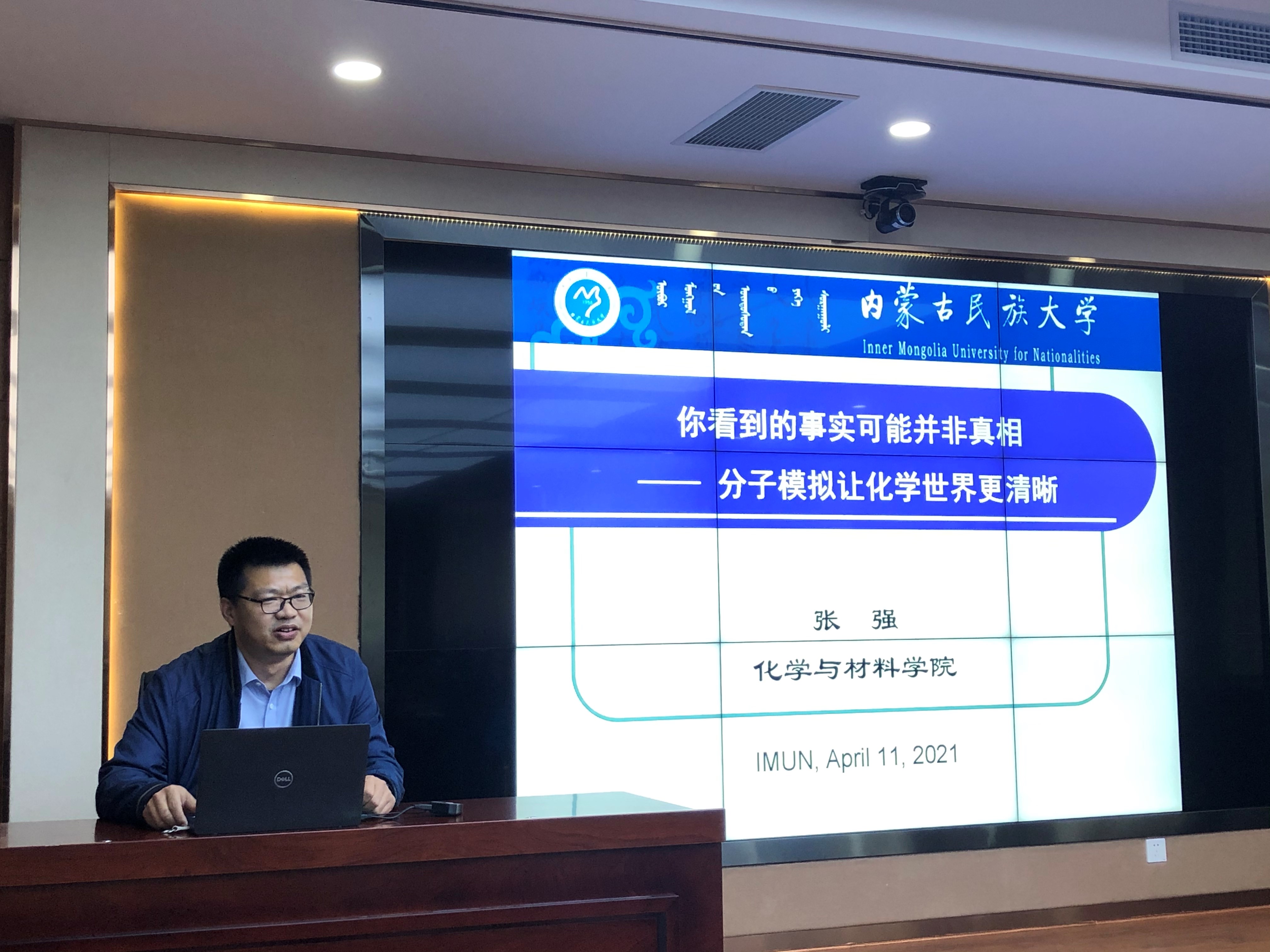 学院张强博士作了题为《你看到的事实可能并非真相—分子模拟让化学世界更清晰》的学术报告。张强博士通过碳和水组成物质的时空多样性,体现了科学研究的多角度性和复杂性,只有通过理论和实验互动,微观与宏观相结合,才能认清化学科学问题本质。之后,向同学们讲解了分子模拟实验的方法和基本步骤,并以实例展示了几个计算化学研究实例。最后,就人工化学家及如何选择软件等问题与学生们进行了深入的探讨。
