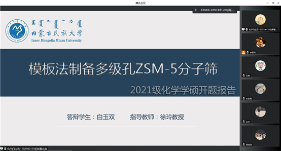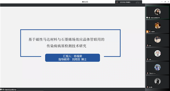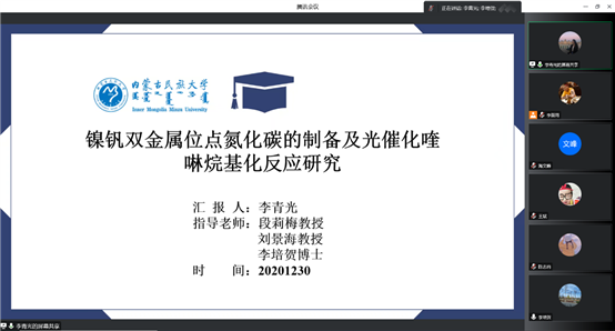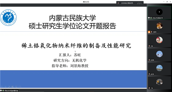 经过研究生汇报、指导教师提问以及提出建议等环节,经过2个多小时的在线汇报,11位研究生顺利完成开题报告。研究生导师和指导教师认真听取学生的汇报,对11位同学提出了的研究计划以及下一步的研究方向给予了针对性的宝贵意见及建议。