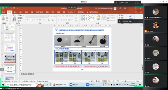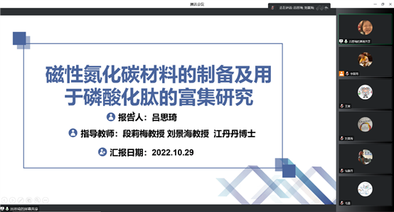经过研究生汇报、指导教师提问以及提出建议等环节,经过3个多小时的在线汇报,10位研究生顺利完成中期检查。研究生导师认真听取学生的汇报,对10位同学提出了的研究内容提出了针对性的宝贵意见及建议,学生们也对老师提出的问题进行了一一解答。