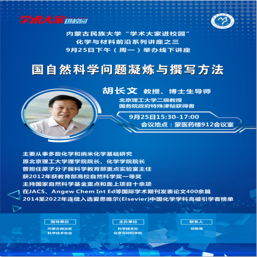 胡长文教授简介:北京理工大学二级教授,博士生导师,1996年享受国务院政府特殊津贴,2016至2020年受聘北京理工大学特聘教授。1988年获东北师范大学理学硕士、1993年获日本东京大学工学博士学位。曾担任北京理工大学理学院院长、化学学院院长,原子分子簇科学教育部重点实验室主任等职。胡长文教授多年一直从事多酸化学和纳米化学基础研究,主持国家自然科学基金重点和面上项目十余项,在JACS、Angew Chem Int Ed等国际学术期刊发表论文400余篇。2012年获教育部高校自然科学奖一等奖等奖励。2014至2022年连续入选爱思唯尔(Elsevier)中国化学学科高被引学者榜单。2014至2022年连续入选爱思唯尔(Elsevier)中国化学学科高被引学者榜单。