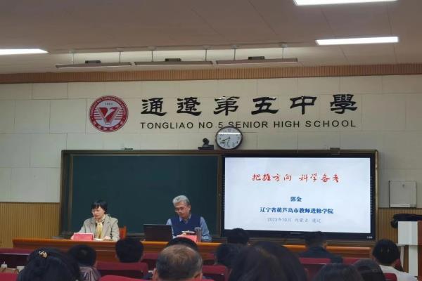 本次研讨会邀请到辽宁省葫芦岛市教师进修学院的郭金老师进行经验分享。作为葫芦岛市特级教师、一线教学名师,郭老师在新高考改革动向、高考试题分析等方面具有丰富经验。研讨会上,郭老师从学习高考评价体系、深研课程标准、重视高考真题和精准备考四个方面进行讲授,为一线教师制定更具前瞻性和实效性的新高考备考策略,提供了思路和指导建议。